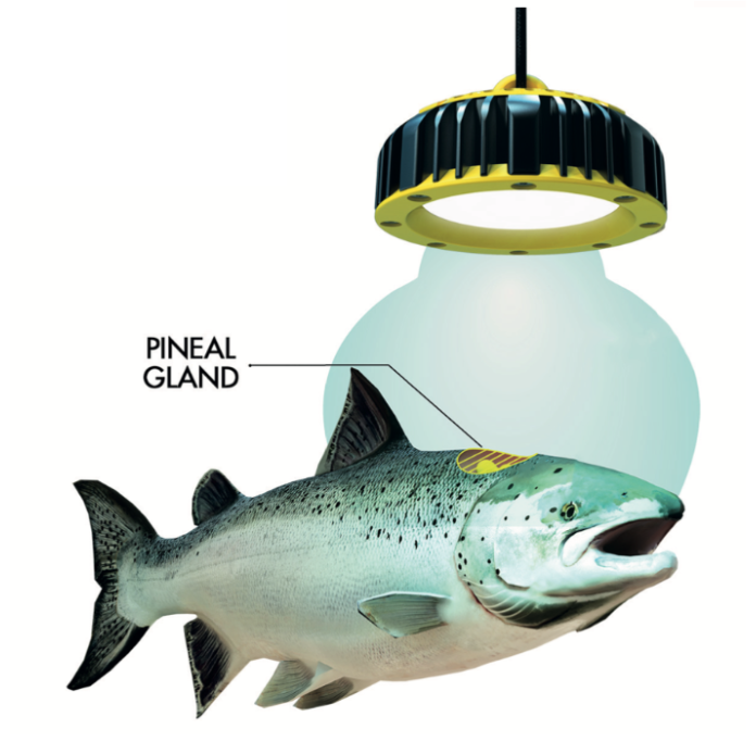 Patrón de iluminación dirigido a la glándula pineal La distribución angular de TEMPEST está diseñada para dirigir la energía útil directamente hacia la columna de agua de la jaula, minimizando la emisión hacia la superficie (energía perdida como contaminación lumínica) y hacia el fondo (ineficaz para el fotoperíodo). Cada fotón emitido tiene mayor probabilidad de incidir sobre la glándula pineal del salmón que en cualquier diseño omnidireccional. Este principio es la base del índice DUI (Directed Useful Irradiance) desarrollado por EVOLUX.